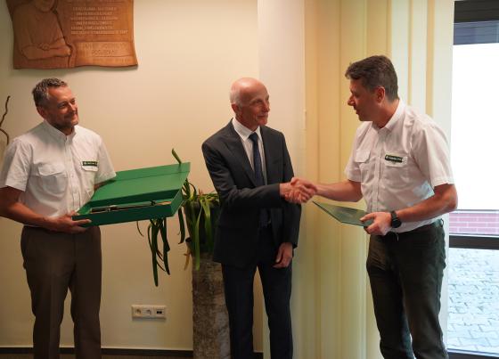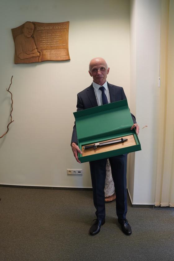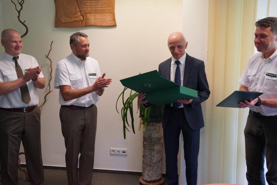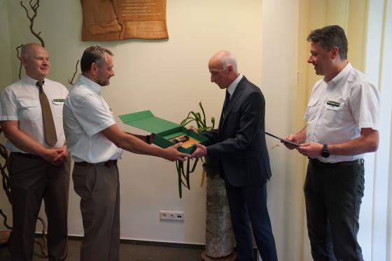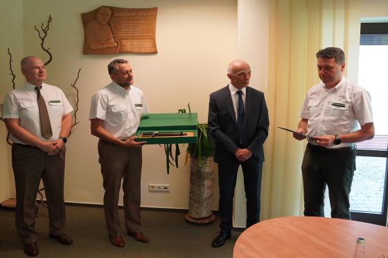 Wręczenia dokonał Pan Marcin Polak zastępca Dyrektora Generalnego Lasów Państwowych ds. Ekonomicznych.